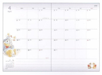 メール便送料無料!チップ&デール/2020年B6マンスリーダイアリー/ポップコーン(63740)/スケジュール帳/手帳/2019年10月始まり