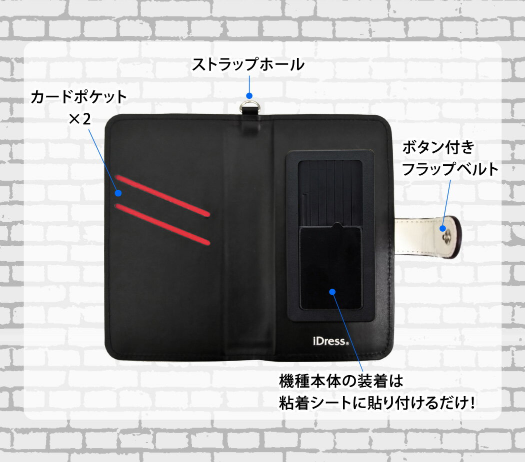 対応機種 iPhone 11 Pro iPhone XS iPhone X iPhone 8 iPhone 7 iPhone 6s iPhone 6 iPhone 5s iPod touch 5 iPod touch 6 Xperia X Compact docomo:SO-02J Xperia X Performance docomo:SO-04H au:SOV33 SoftBank:502SO Xperia Z5 docomo:SO-01H au:SOV32 SoftBank:501SO Xperia Z5 Compact docomo:SO-02H Xperia Z4 docomo:SO-03G au:SOV31 SoftBank:402SO Xperia A4 docomo:SO-04G Xperia Z3 docomo:SO-01G au:SOL26 SoftBank:401SO Xperia Z3 Compact docomo:SO-02G Xperia Z1f docomo:SO-02F Xperia Z docomo:SO-02E Xperia AX docomo:SO-01E Galaxy S6 docomo:SC-05G Galaxy S6 edge docomo:SC-04G au:SCV31 SoftBank:404SC Galaxy S3α docomo:SC-03E Galaxy S3 Progre au:SCL21 Galaxy S3 docomo:SC-06D AQUOS CRYSTAL SoftBank:305SH AQUOS Compact docomo:SH-02H Nexus 5 Nexus 6 HTC J butterfly au:HTL23 STREAM S SoftBank:302HW DM-01H DM-01G SH-02G SH-05F F-03F DM016SH DM015K DM014SH ・幅7.4cm×高さ15cm×厚さ1.2cm 以内のスマートフォンが対応サイズと なります。